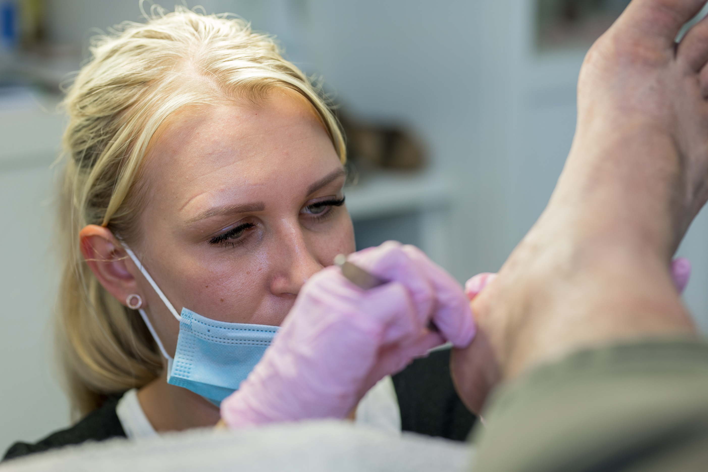 (Hühnerauge bearbeiten, Hornhaut entfernen, Nägel schneiden, Nägel mit Pilzbefall runterschleifen, usw.)